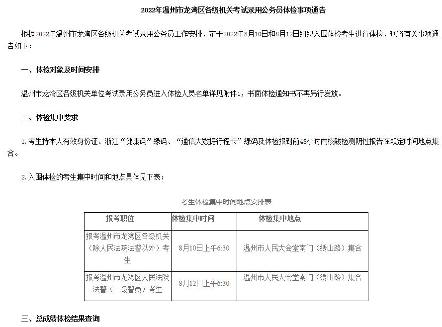 2022年浙江溫州市龍灣區(qū)公務(wù)員考試體檢事項(xiàng)通告