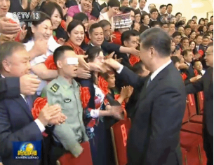 2019年5月16日,第六次全國自強模范暨助殘先進(jìn)表彰大會在人民大會堂舉行。雷鳴般的掌聲中,習(xí)近平主席在雙眼蒙著厚厚紗布的杜富國面前停下,輕輕拍了拍他的肩膀。