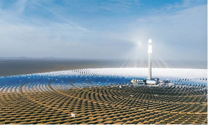 在甘肅省敦煌市向西約20公里處,被稱為“超級鏡子發(fā)電站”的敦煌100兆瓦熔鹽塔式光熱電站在戈壁灘上閃耀。這是我國目前建成規(guī)模最大、吸熱塔最高、可24小時連續(xù)發(fā)電的100兆瓦級熔鹽塔式光熱電站。新華社記者馬希平/攝