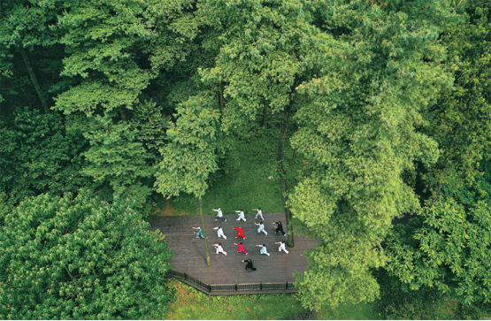2022年以來(lái),貴州省貴陽(yáng)市以長(zhǎng)坡嶺國(guó)家級(jí)森林公園為試點(diǎn),建設(shè)貴州首個(gè)“林長(zhǎng)制”主題公園,開(kāi)展習(xí)近平生態(tài)文明思想、林長(zhǎng)制政策、森林資源保護(hù)發(fā)展政策等宣傳,促進(jìn)形成全社會(huì)愛(ài)林、護(hù)林、興林的良好氛圍。圖為2022年7月13日,市民在長(zhǎng)坡嶺國(guó)家級(jí)森林公園里健身(無(wú)人機(jī)照片)。新華社記者楊文斌/攝