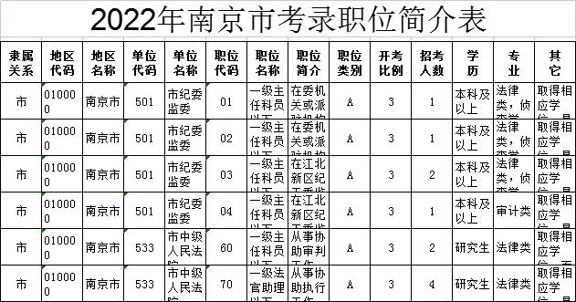 以2022江蘇省考南京地區(qū)職位表為例,每一列表格對(duì)應(yīng)的都是不同的內(nèi)容,有崗位的相關(guān)介紹,也有具體的條件要求,在這里小編給到的建議是:先篩選符合條件的崗位,然后再做挑選(畢竟有崗可報(bào)才能有崗可挑)