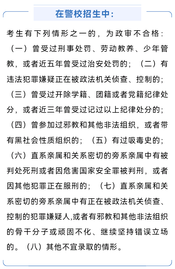 二、直系親屬如果有判處死刑的情況,或者正在服刑、曾犯有危害國(guó)家安全罪、正在被立案審查的,都會(huì)影響到子女的報(bào)考。