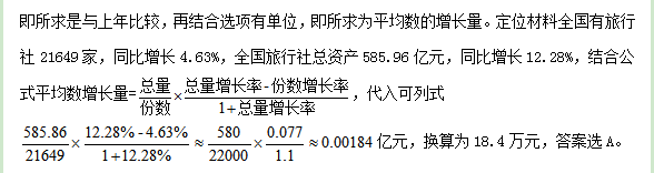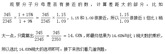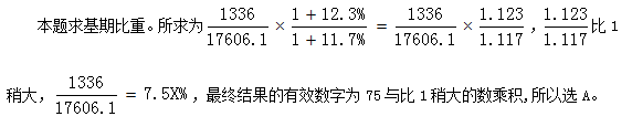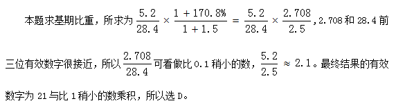 我們在做題過程中首先根據(jù)問題確定考查考點,然后將材料中的數(shù)據(jù)代入公式,最后結(jié)合選項估算出結(jié)果。我們通過下面的例題看看計算過程如何確定最終答案。