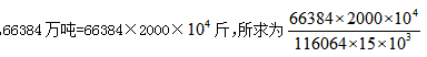 產(chǎn)量單位為“萬噸”,要轉(zhuǎn)化為“斤”,1噸=2000斤,66384萬噸=