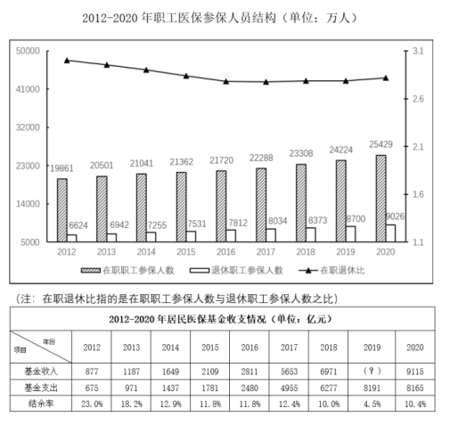 94.假設(shè)2021年居民醫(yī)保基金收入同比增速與2020年相同,那么,2021年居民醫(yī)?;鹗杖爰s為:( )