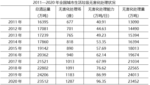 100.關(guān)于全國(guó)城市生活垃圾清運(yùn)和無(wú)害化處理狀況,能夠從上述資料中推出的是:( )