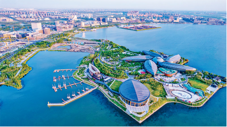 構(gòu)建新發(fā)展格局是開放的國(guó)內(nèi)國(guó)際雙循環(huán),我國(guó)堅(jiān)定不移擴(kuò)大對(duì)外開放,對(duì)外開放廣度和深度得到全面拓展。圖為上海自貿(mào)區(qū)臨港新片區(qū)滴水湖畔,多個(gè)重點(diǎn)項(xiàng)目如雨后春筍般拔地而起,面貌日新月異。中新社發(fā)鐘鑫旺/攝