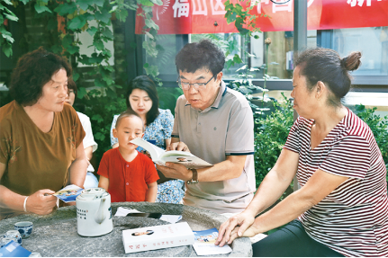 近日,山東省煙臺(tái)市組織開展《習(xí)近平談治國(guó)理政》第四卷微宣講活動(dòng)。圖為2022年9月1日,煙臺(tái)市福山區(qū)高疃鎮(zhèn)渡口村村民聆聽宣講員分享《習(xí)近平談治國(guó)理政》第四卷學(xué)習(xí)體會(huì)。山東省委宣傳部供圖