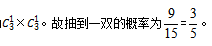 方法二:想要抽取一雙鞋,我們可以考慮一只一只地取,無論先選左腳還是右腳,都不影響最終結(jié)果。我們可以先固定一只,比如先隨便抽取一只,如果是左腳,那么剩下的5只鞋中,有3只右腳能與之配對成一雙鞋,所以隨機抽取一雙鞋的概率為
