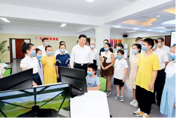 2022年8月16日至17日,中共中央總書(shū)記、國(guó)家主席、中央軍委主席習(xí)近平在遼寧考察。這是17日下午,習(xí)近平在沈陽(yáng)市皇姑區(qū)三臺(tái)子街道牡丹社區(qū)群眾活動(dòng)中心,同幸福教育課堂的孩子們親切交流。新華社記者申宏/攝