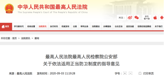 關(guān)于依法適用正當(dāng)防衛(wèi)制度的指導(dǎo)意見