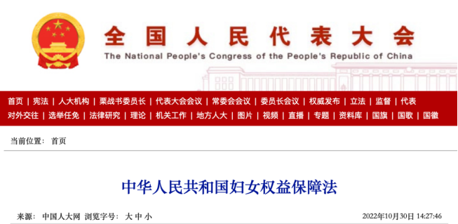 2023.1.1施行:中華人民共和國婦女權(quán)益保障法(最新修正)