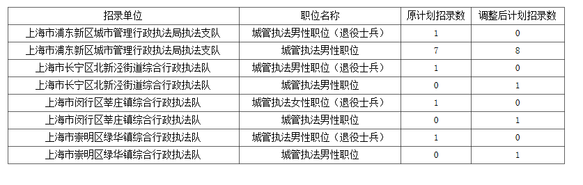因城管執(zhí)法職位(定向招錄退役士兵)報(bào)名人數(shù)不足,招錄計(jì)劃作相應(yīng)調(diào)整: