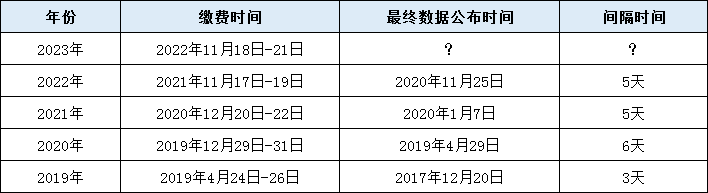 在這告訴大家,根據(jù)歷年情況來看繳費(fèi)確認(rèn)階段后,一般在一周內(nèi)官方會(huì)發(fā)布繳費(fèi)報(bào)名數(shù)據(jù)。以下是近幾年浙江省考繳費(fèi)時(shí)間匯總:
