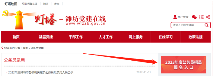 它來了!2023年山東省考終于要來了!今日,燈塔-濰坊黨建在線公務(wù)員錄用專題進(jìn)行測(cè)試,上線了2023年省考報(bào)名入口!如下: