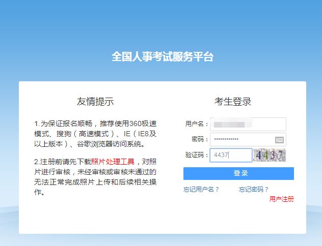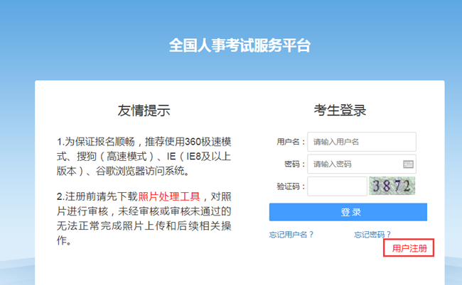 報考者注冊時注意事項: