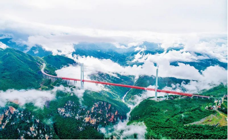 新時(shí)代十年的偉大變革具有里程碑意義。十年來,我國建成世界最大的高速鐵路網(wǎng)、高速公路網(wǎng),機(jī)場港口、水利、能源、信息等基礎(chǔ)設(shè)施建設(shè)取得重大成就。圖為2016年底開通的世界第一高橋貴州北盤江大橋。人民視覺龔小勇/攝