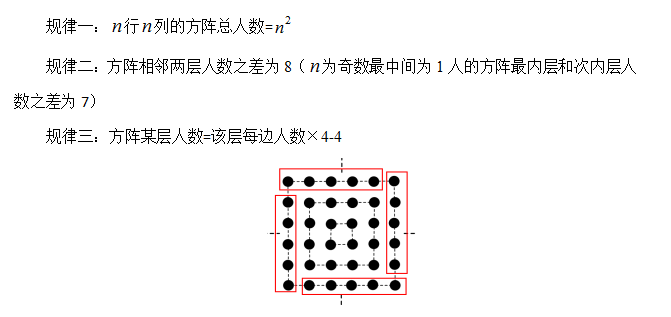 大家在備考中需要注意的是,在方陣問(wèn)題中,若題干中沒(méi)有明確說(shuō)明是實(shí)心方陣還是空心方陣,則默認(rèn)為實(shí)心方陣。