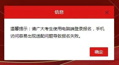 溫馨提示:請廣大考生使用電腦端登錄報名,手機訪問容易出現(xiàn)適配問題導(dǎo)致報名失敗。