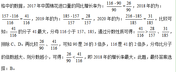 問(wèn)題:2017-2020年中國(guó)棉花進(jìn)口量同比增長(zhǎng)最快的年份是:( )
