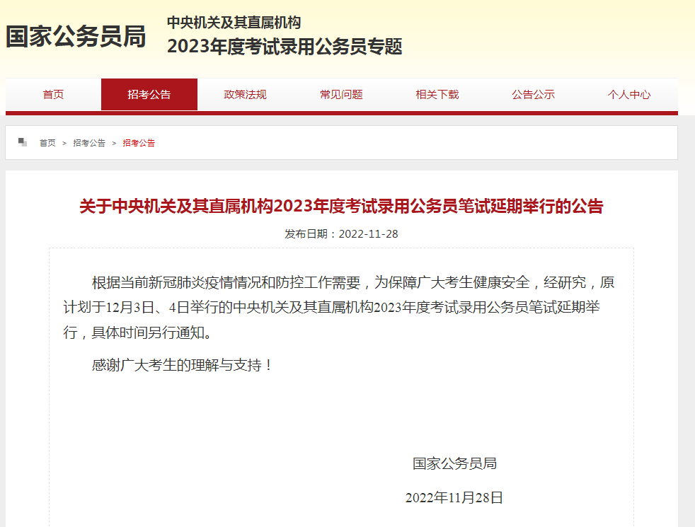 2023年國家公務員考試筆試延期舉行! 這可是歷年國考頭一回~