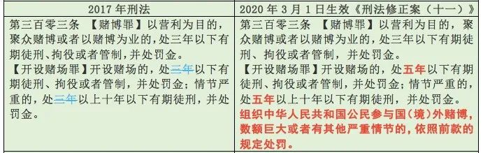 刑法修正案11前后開設(shè)賭場罪對比