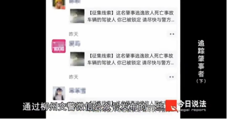 為盡快查獲第二輛肇事車輛,警方借助無人機(jī)來篩選逃逸路線,還通過“柳州交警”微信公眾號向社會發(fā)布線索征集通告。
