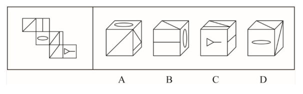 題:邊四個圖形中,只有一個是由左邊的四個圖形拼合(只能通過上、下、左、右平移)而成的,請把它找出來:( )