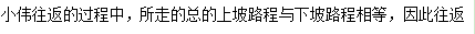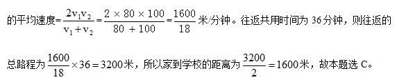 例2:小偉從家到學校去上學,先上坡后下坡。到學校后,小偉發(fā)現(xiàn)沒帶物理課本,他立即回家拿書(假設在學校耽誤時間忽略不計),往返共用時36分鐘。假設小偉上坡速度為80米/分鐘,下坡速度為100米/分鐘,小偉家到學校有多遠?( )