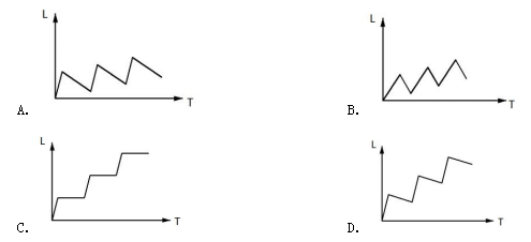 例1:甲和乙兩條自動化生產線同時生產相同的產品,甲生產線單位時間的產量是乙生產線的5倍,甲生產線每工作1小時就需要花3小時時間停機冷卻而乙生產線可以不間斷生產。問以下哪個坐標圖能準確表示甲、乙生產線產量之差(縱軸L)與總生產時間(橫軸T)之間的關系?( )
