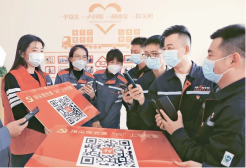 2022年11月15日,在山東省東營(yíng)市的東營(yíng)區(qū)化工產(chǎn)業(yè)園區(qū)“紅運(yùn)家”紅領(lǐng)驛站,非公企業(yè)黨員掃描“指尖微黨課”二維碼學(xué)習(xí)黨章等知識(shí),推動(dòng)黨的二十大精神和《中國(guó)共產(chǎn)黨章程》深入人心、落地生根。人民圖片劉智峰/攝
