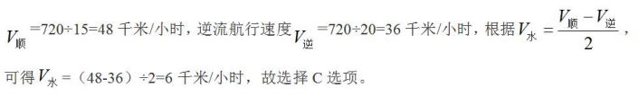 【答案】C【解析】題干表述的是船在水中行駛,屬于流水行船。題目已知A、B的距離,順流而下用的時間,則根據(jù)行程基本公式,可得輪船順水速度: