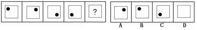 ?。ù鸢福築。黑點(diǎn)在正方形中順時(shí)針移動(dòng)。在第5個(gè)圖形中,應(yīng)該正好移動(dòng)到左上角。)