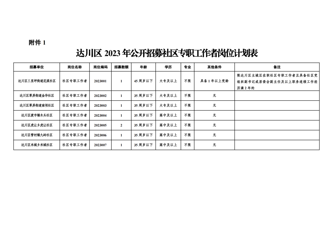 達(dá)州市達(dá)川區(qū)2023年公開招募社區(qū)專職工作者公告