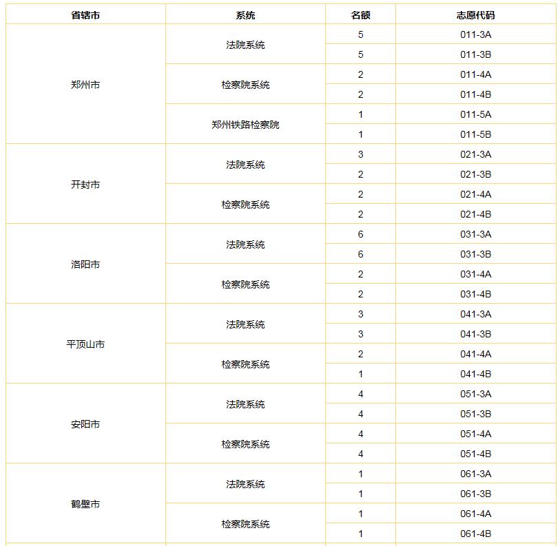 2023年河南選調(diào)生考試法檢專項名額分配及志愿代碼表
