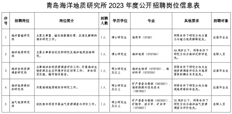 青島海洋所2023年度公開招聘工作人員公告