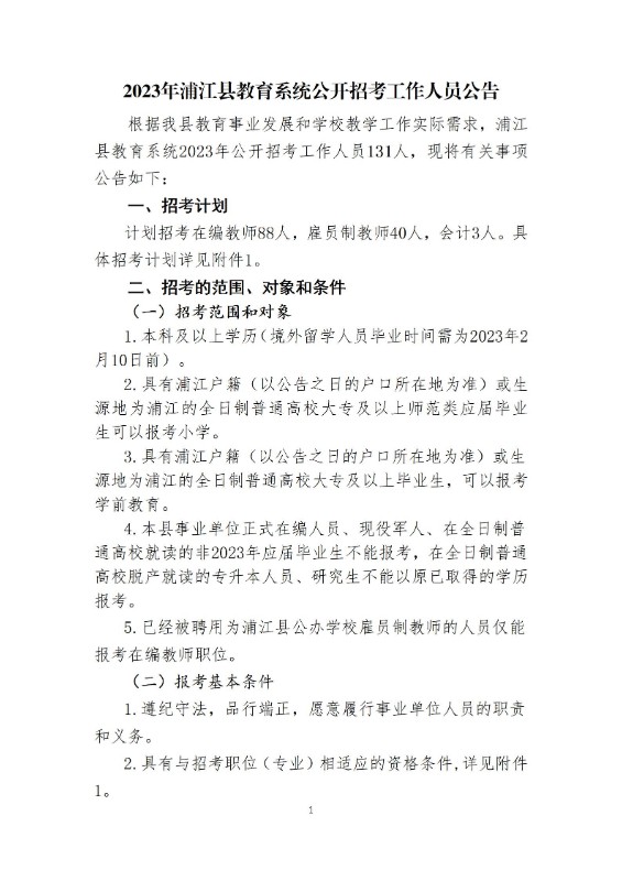 2023年浦江縣教育系統(tǒng)公開(kāi)招考工作人員公告
