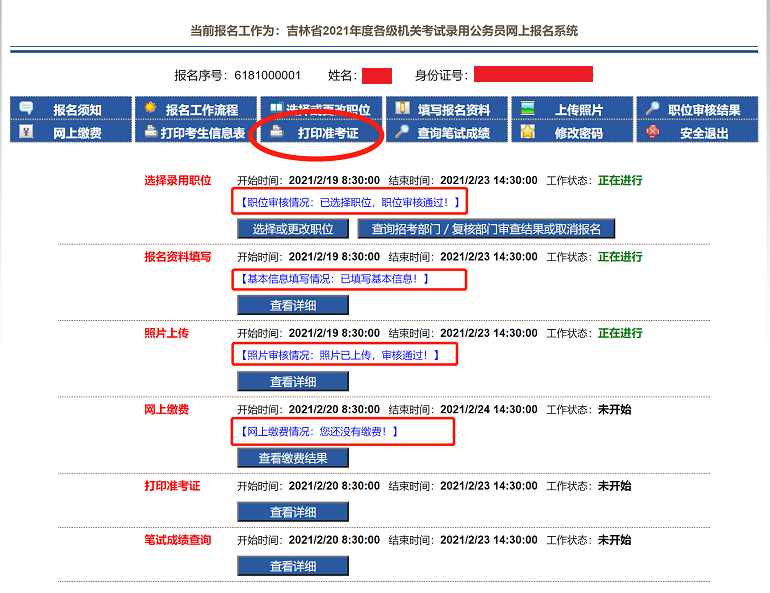 1、準(zhǔn)考證必須在報(bào)名網(wǎng)上繳費(fèi)成功后,在規(guī)定時(shí)間內(nèi)方可打印。