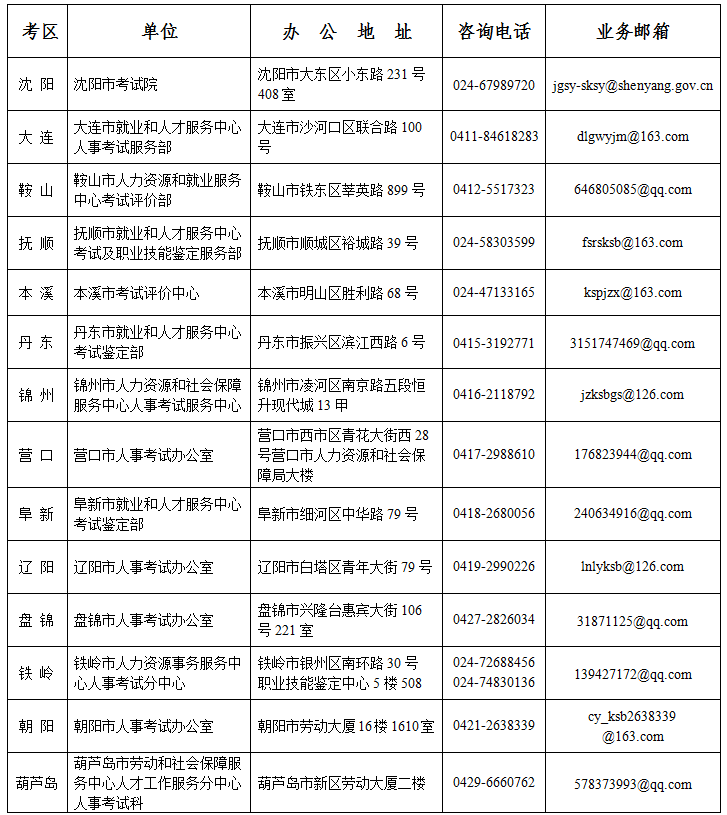 2023年遼寧公務員考試各市業(yè)務辦理地址及聯系方式