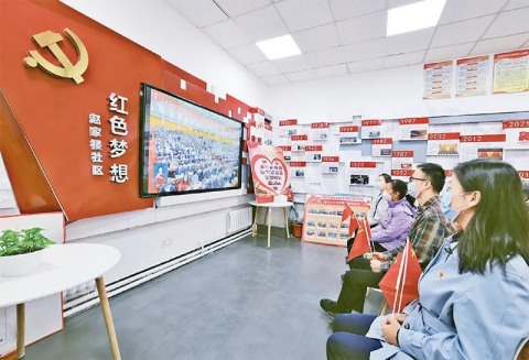 2022年10月16日,北京市東城區(qū)建國(guó)門街道趙家樓社區(qū)黨員代表在社區(qū)“紅色夢(mèng)想”黨建活動(dòng)室,收看黨的二十大開幕會(huì)直播。北京市東城區(qū)建國(guó)門街道供圖鄧偉/攝