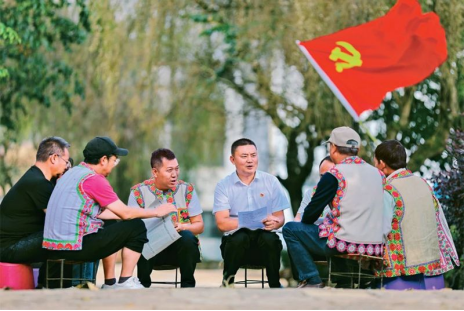云南省曲靖市陸良縣紀(jì)委監(jiān)委以“清風(fēng)講壇”為載體,組織宣講員通過面對面、互動(dòng)化、通俗化的方式開展宣講活動(dòng),推動(dòng)黨的二十大精神在基層落地生根。圖為2022年10月26日,陸良縣龍海鄉(xiāng)小新村的彝族群眾參加宣講活動(dòng)現(xiàn)場。人民視覺王勇/攝