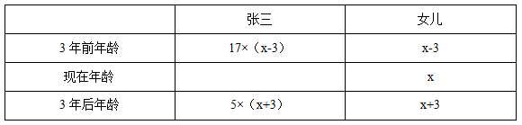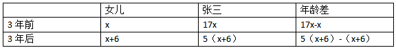 例3:3年前張三的年齡是他女兒的17倍,3年后張三的年齡是他女兒的5倍,那么張三的女兒現(xiàn)在多少歲?( )