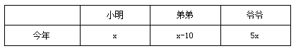 由題目條件可設(shè)小明的年齡為x歲,其弟弟為(x-10)歲,爺爺為5x歲,“爺爺和小明年齡的總和是弟弟年齡的18倍”可列式子x+5x=18(x-10),解得x=15歲,故爺爺年齡為75歲,弟弟年齡為5歲,所求為75+5-15=65歲。