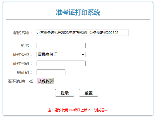 點(diǎn)擊進(jìn)入:2023年北京公務(wù)員考試準(zhǔn)考證打印入口(2月7日10:00至2月12日15:00)