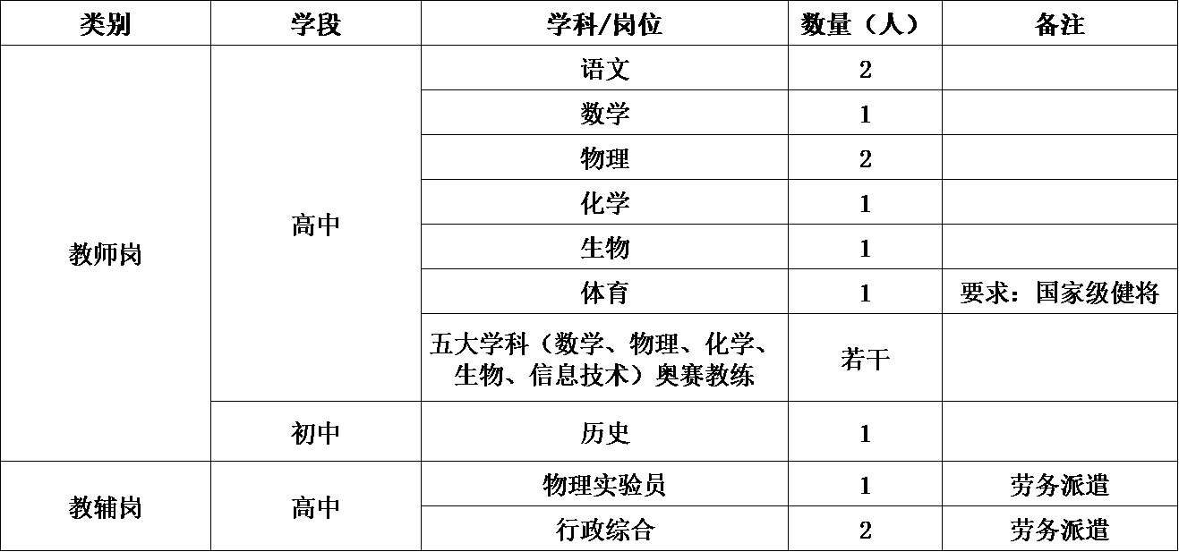 5.除特殊說明外,應屆畢業(yè)生需具備碩士及以上學歷(清華北大本科即可;應聘初中教師者,優(yōu)秀的公費師范生亦可考慮),在校學習成績優(yōu)秀,有學生干部經(jīng)歷者優(yōu)先;在職教師需具備碩士及以上學歷,要求在中學有三年及以上的任教經(jīng)歷,具備中級及以上職稱。