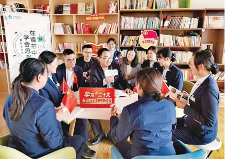 圖為2022年10月28日,江蘇移動(dòng)“青年愛研習(xí)”宣講“青騎兵隊(duì)”向一線員工宣講黨的二十大精神。江蘇移動(dòng)團(tuán)委供圖