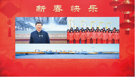 2023年1月18日,中共中央總書記、國(guó)家主席、中央軍委主席習(xí)近平在北京通過(guò)視頻連線看望慰問(wèn)基層干部群眾,向全國(guó)各族人民致以新春的美好祝福。這是習(xí)近平通過(guò)視頻連線,同塔里木油田公司輪南油氣儲(chǔ)運(yùn)中心西氣東輸?shù)谝徽究死瘹鈪^(qū)員工親切交流。新華社記者李濤/攝