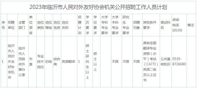 2023年臨沂市人民對外友好協(xié)會機關(guān)公開招聘工作人員簡章