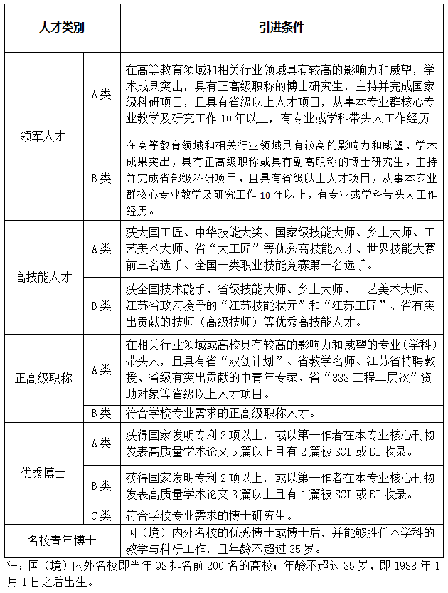 二、人才類別及引進(jìn)條件