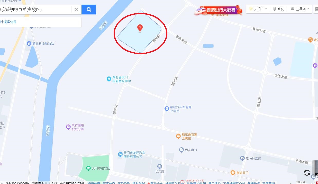 1.考點位置:天門市北湖大道1號。